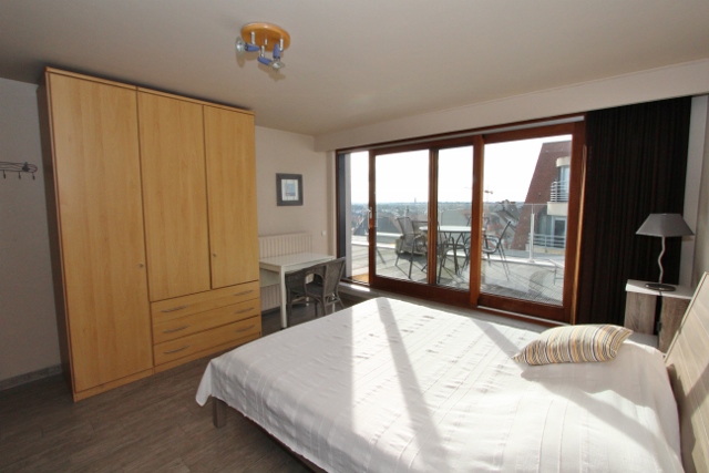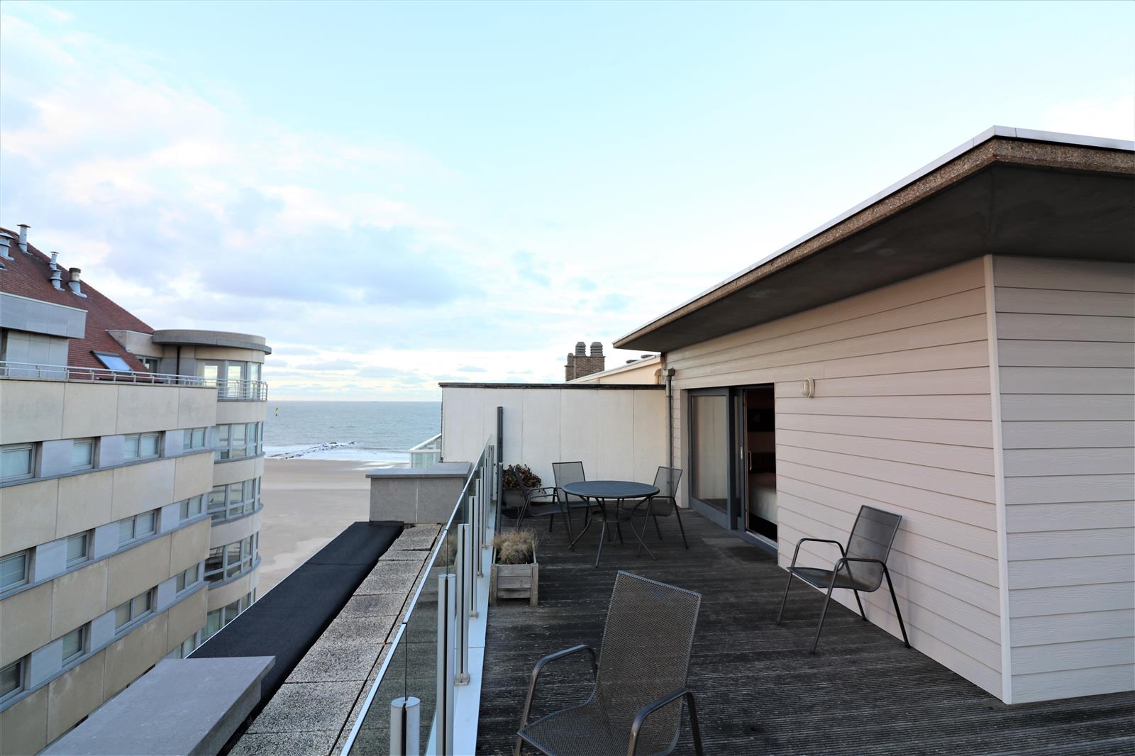 Duplex penthouse agréable situé dans une rue latérale avec 2 chambres à coucher et 2 salles de bains. Terrasse avec superbe vue sur la mer ainsi la verdure de Knokke.