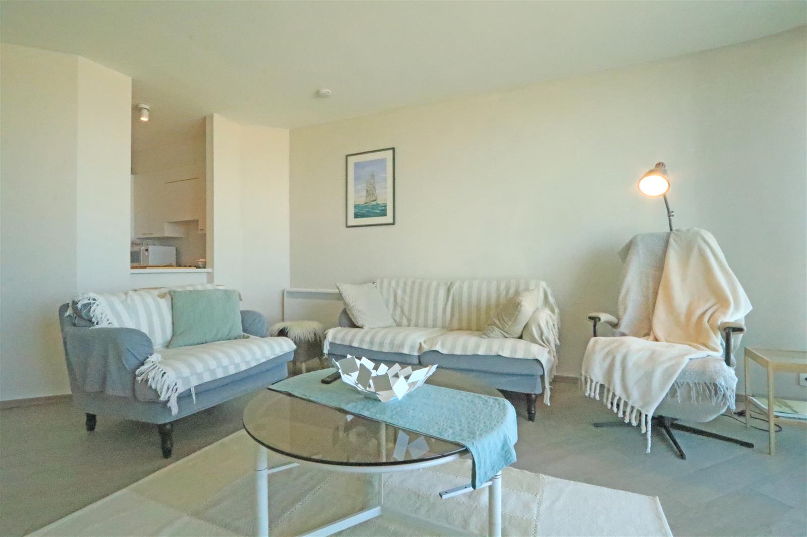 Appartement convivial avec vue mer magnifique. 2 chambres à coucher double, 2 salles de bains. Localisation centrale, emplacement inclus dans les environs.
