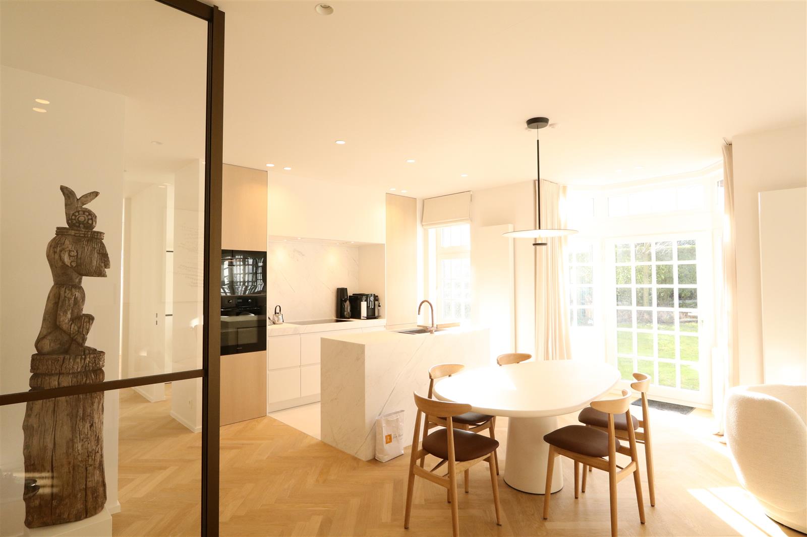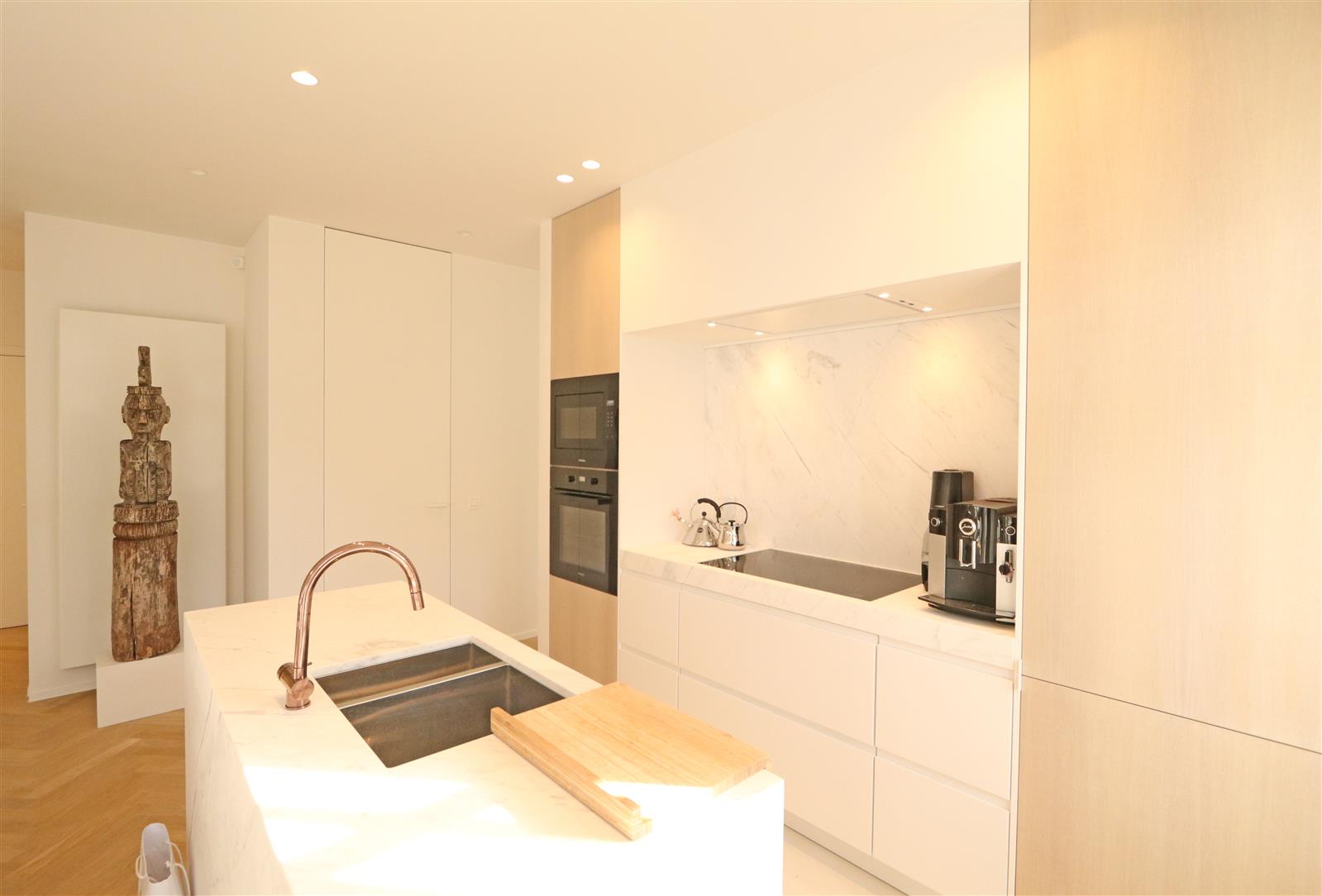 Luxueus appartement in een unieke residentie, rustig gelegen en vlakbij het centrum en de Zeedijk. Zuidgerichte tuin en terras, 3 slaapkamers, aangenaam salon, staanplaats in het gebouw.