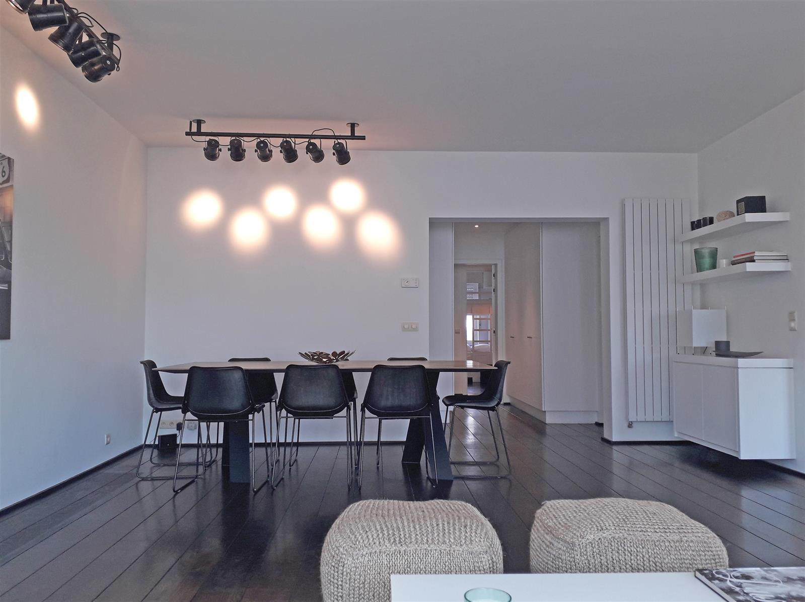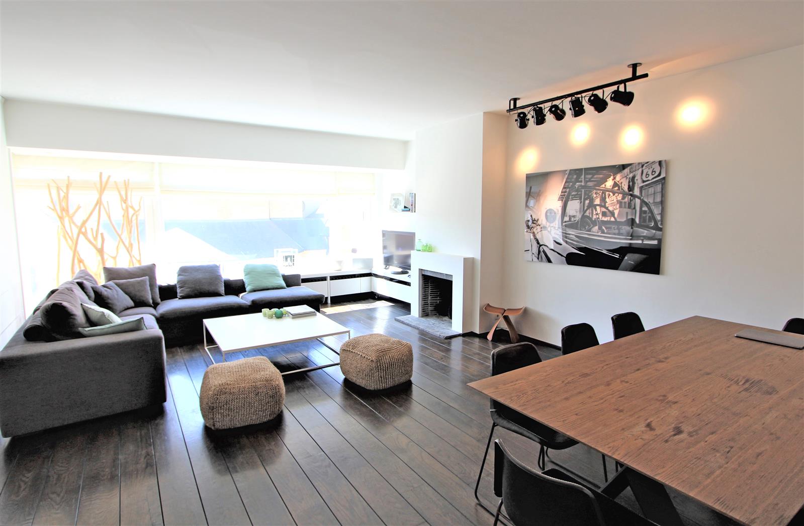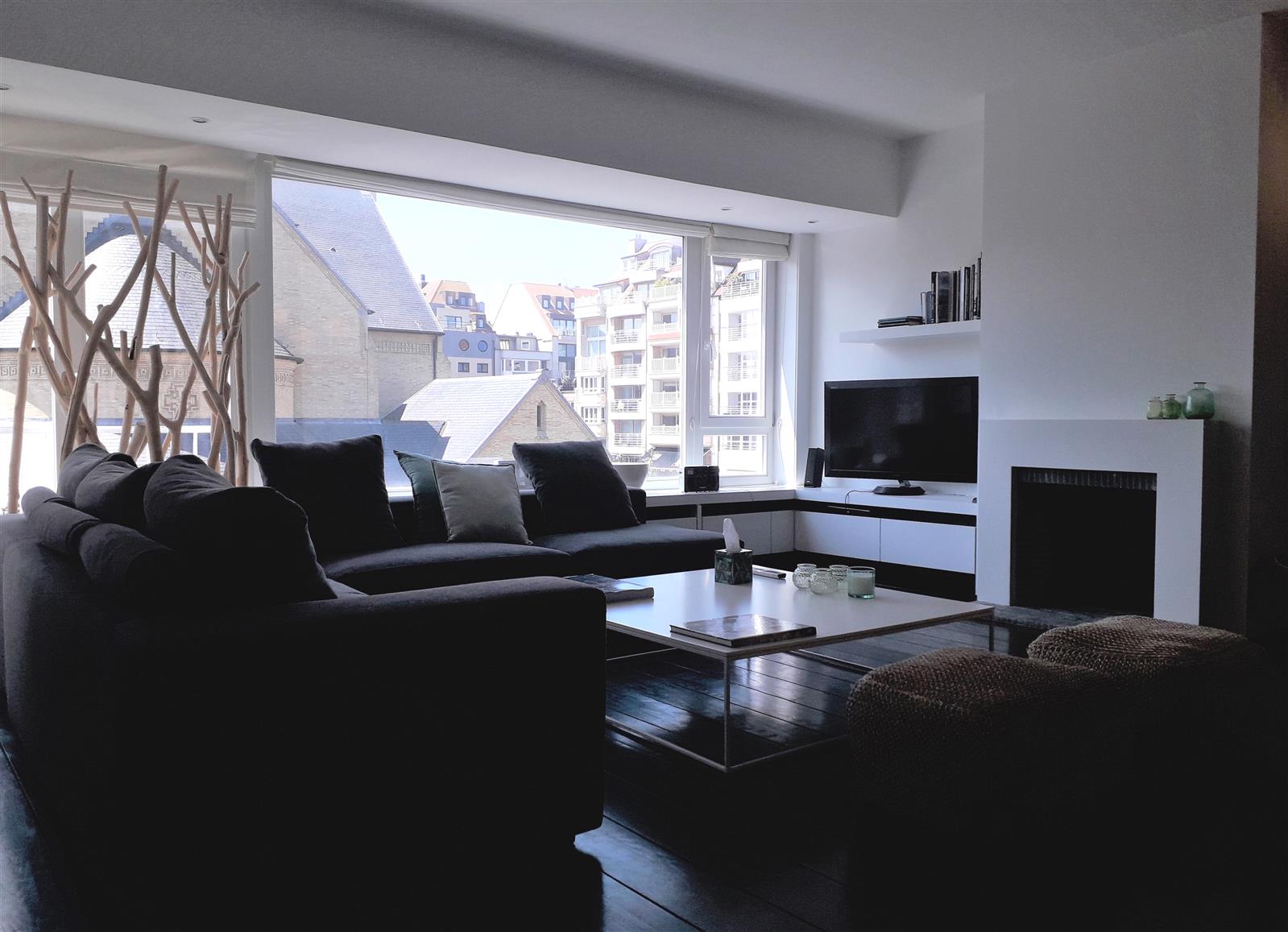 Bel appartement spacieux situé au cœur de Knokke avec vue sur l'église du Sacré-Cœur et à proximité des restaurants de la Dumortierlaan. 3 chambres à coucher avec chacune pièce d'eau. Terrasse confortable à l'avant. Possibilité de louer un garage dans le quartier.